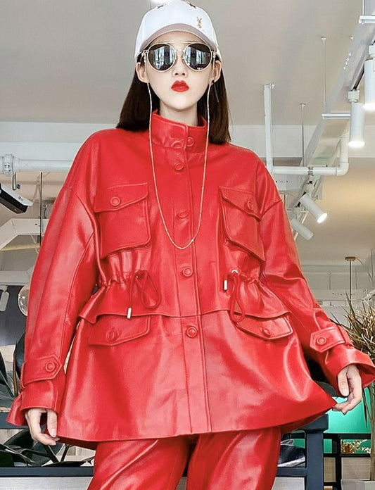 Oversized Genuine Leather Military Jacket - Multiple Colours