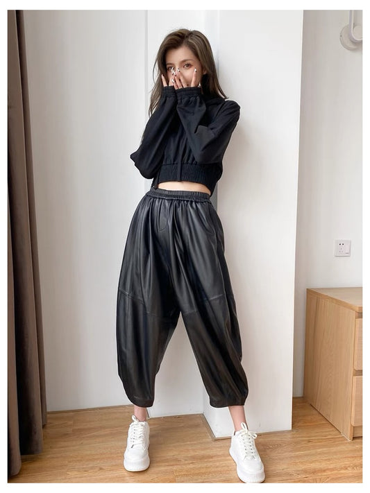 Sold outGenuine Leather Pants Harem Pants