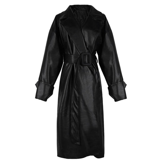 Long Faux Leather Trench with large Cuffs