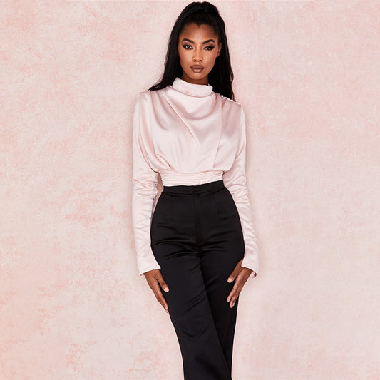 Satin Long Sleeve Bodysuit Blouse - 5 colors